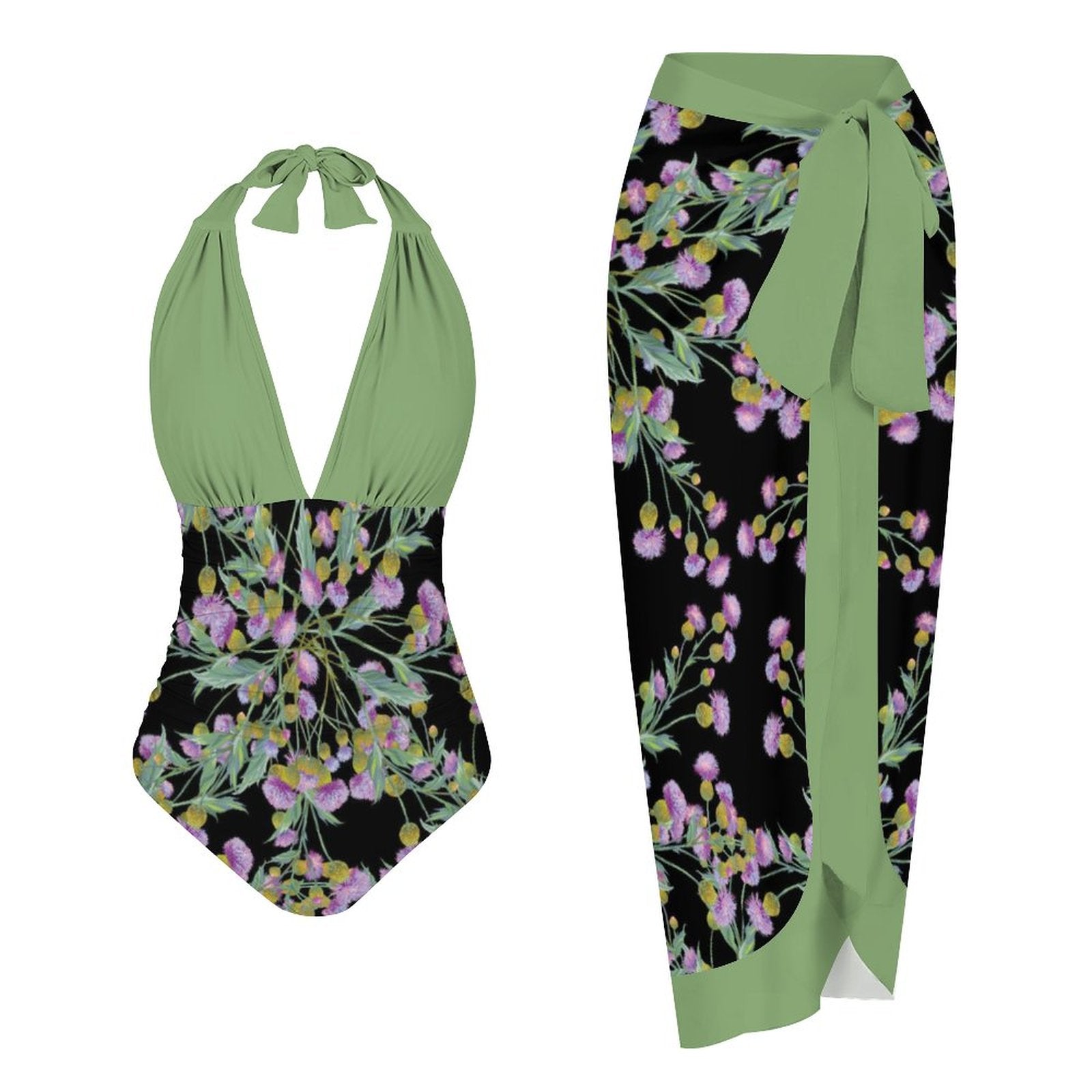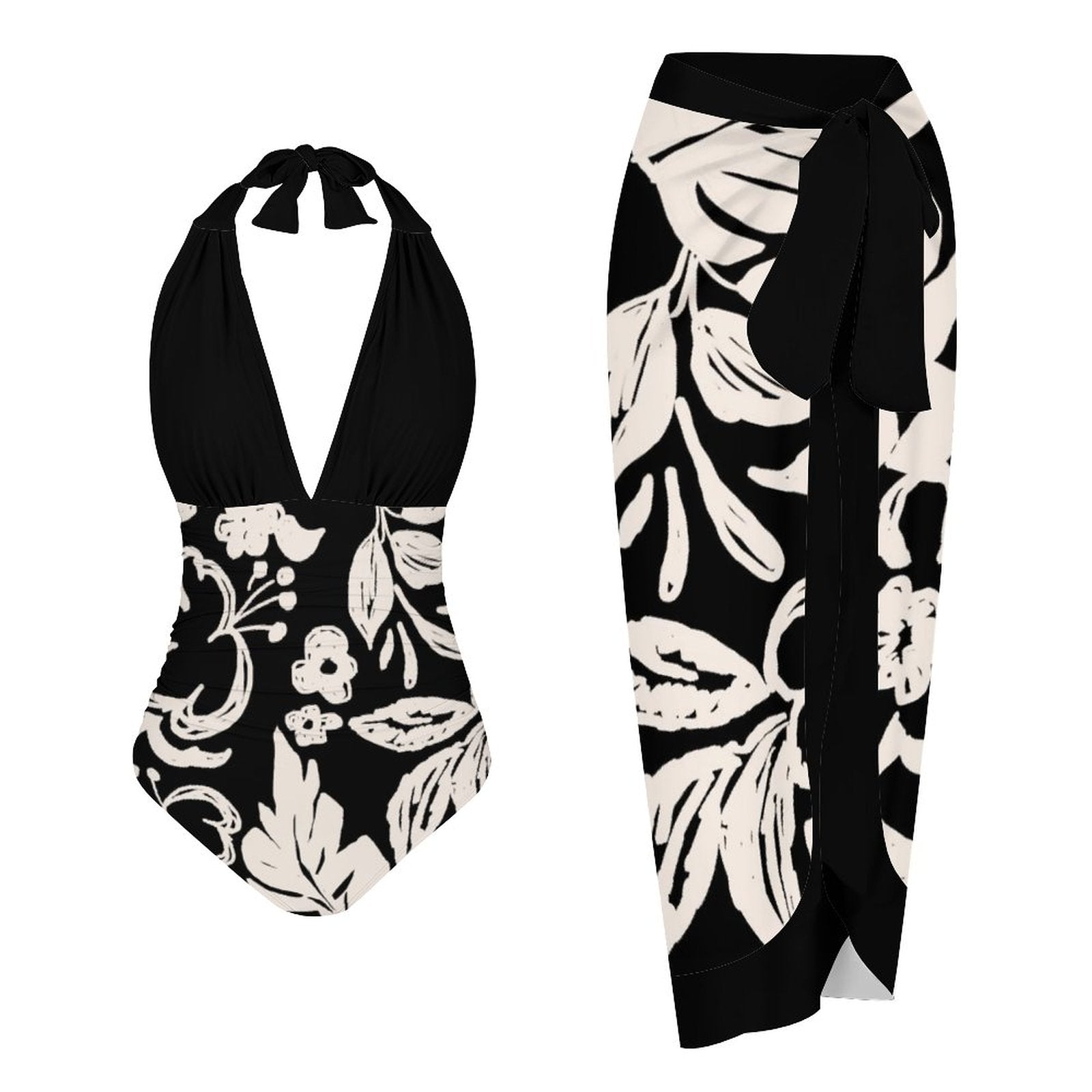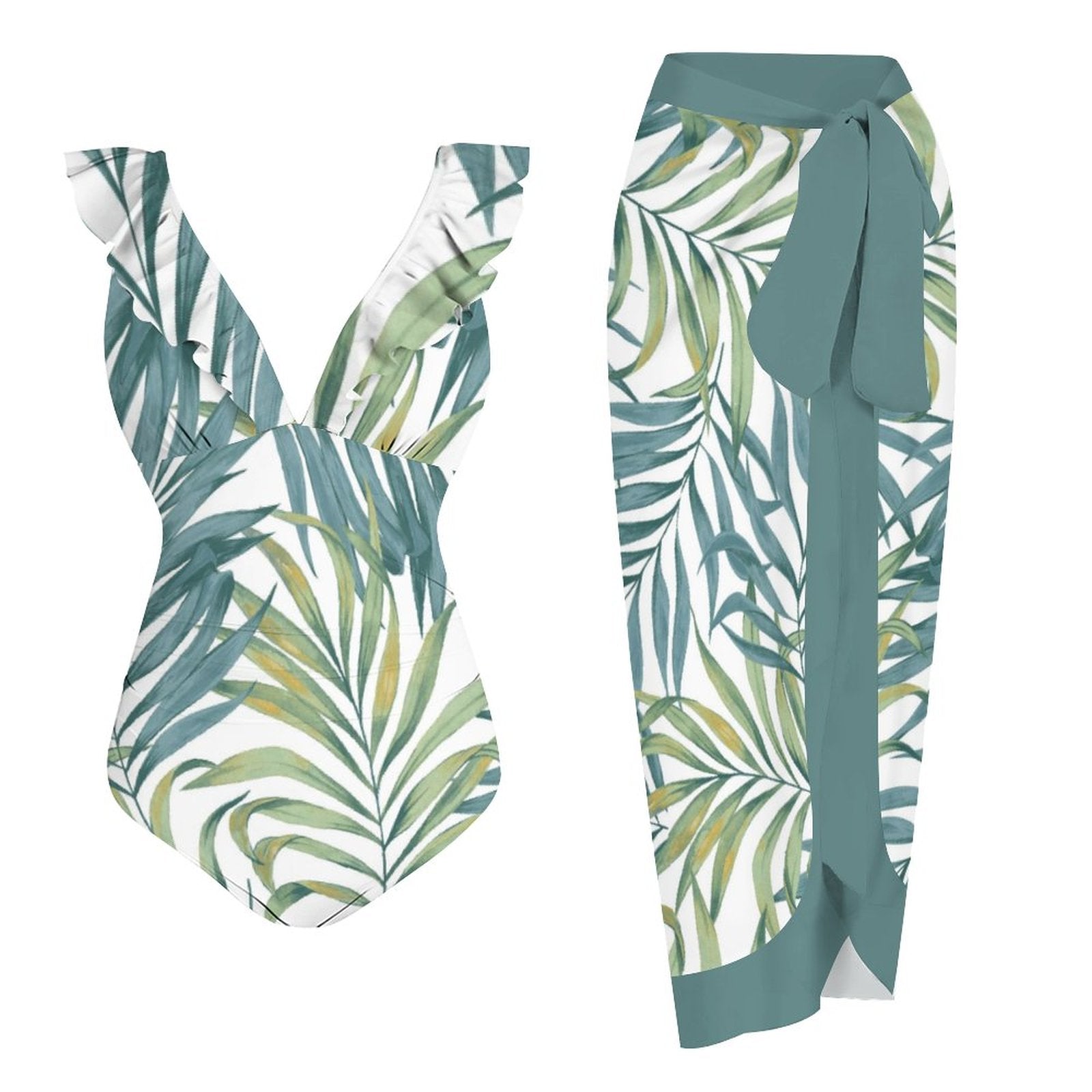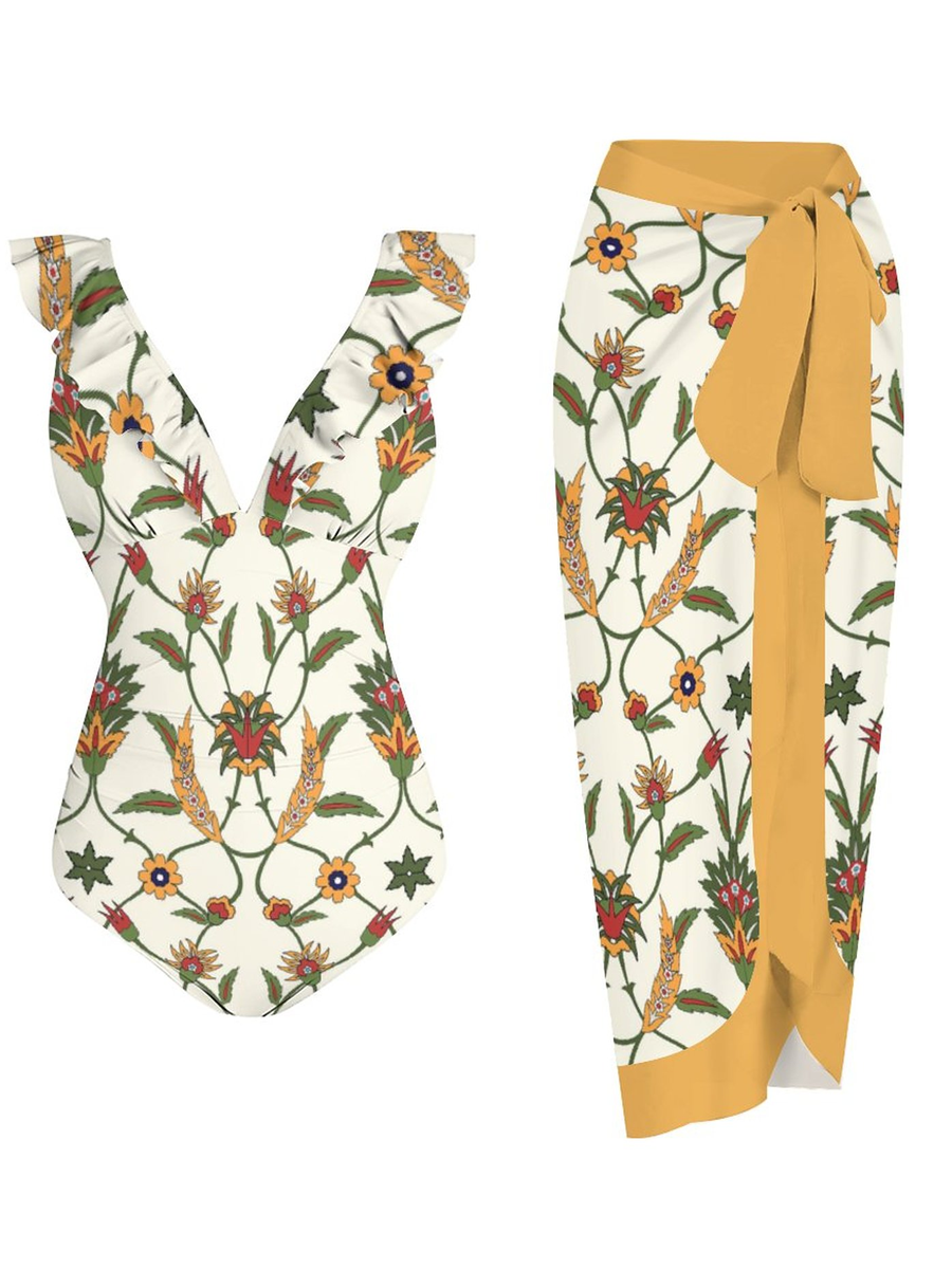 Casual Printed One-Piece Swimsuit And Cover Up 2305102752