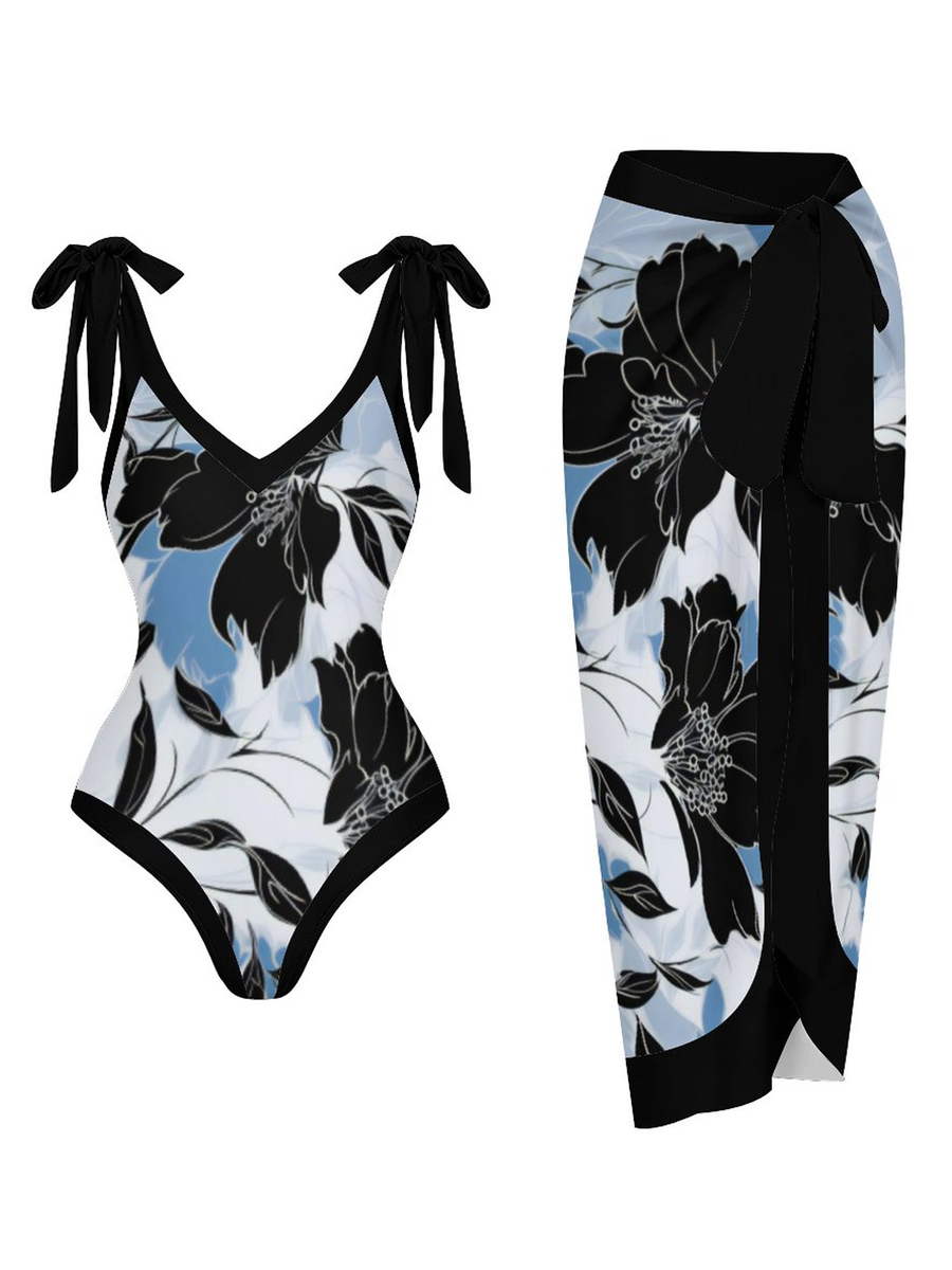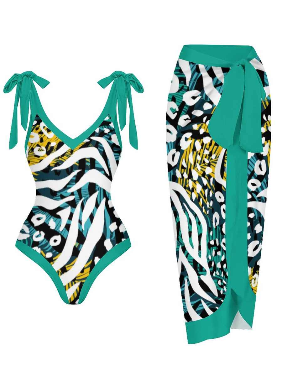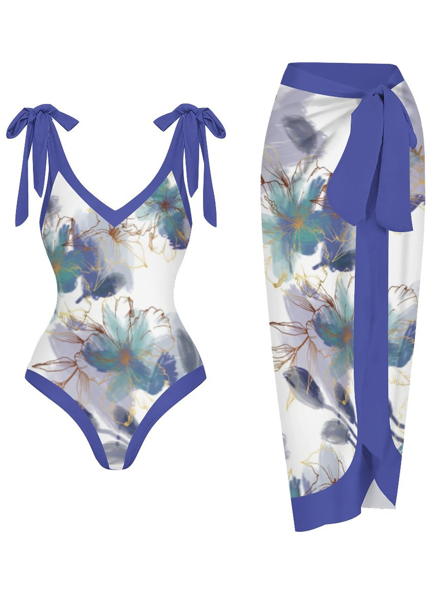 Casual Printed One-Piece Swimsuit And Cover Up 2305102504