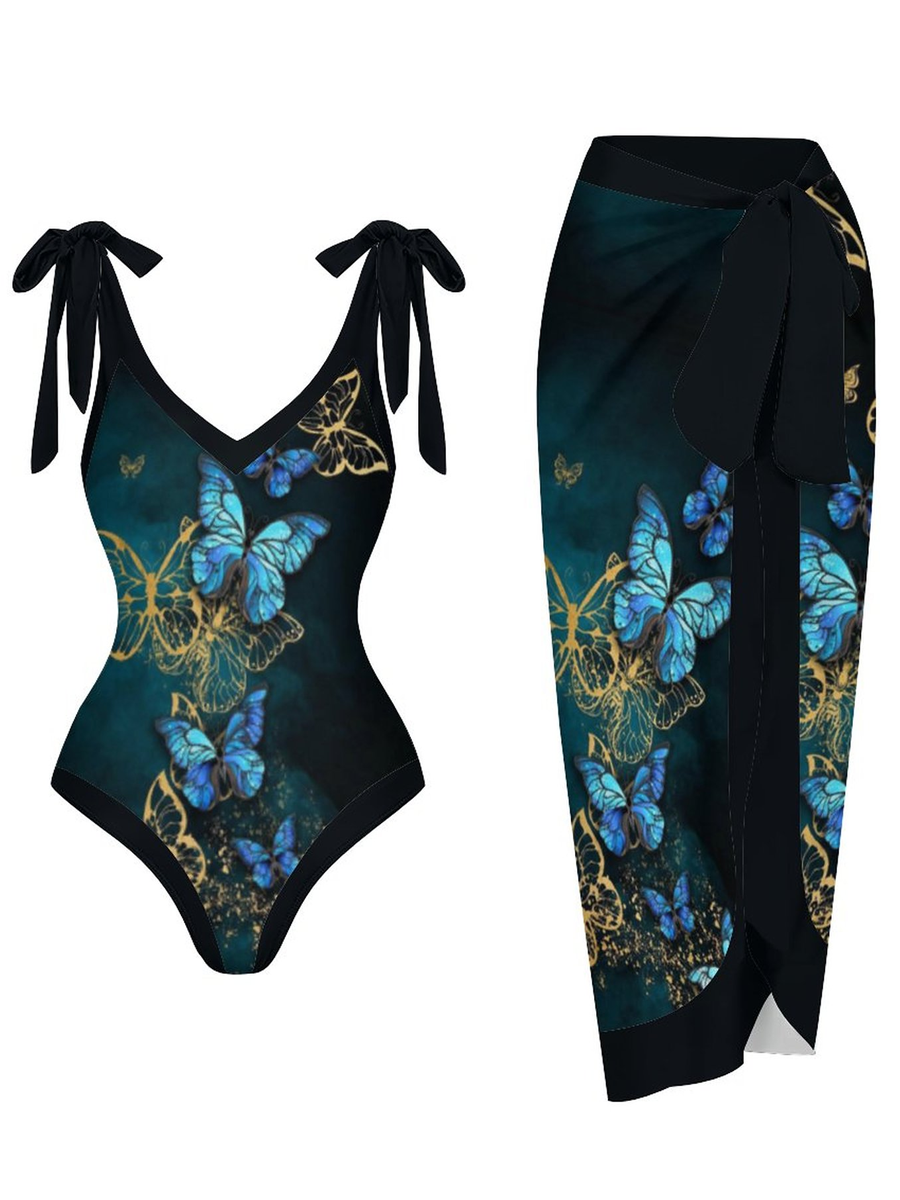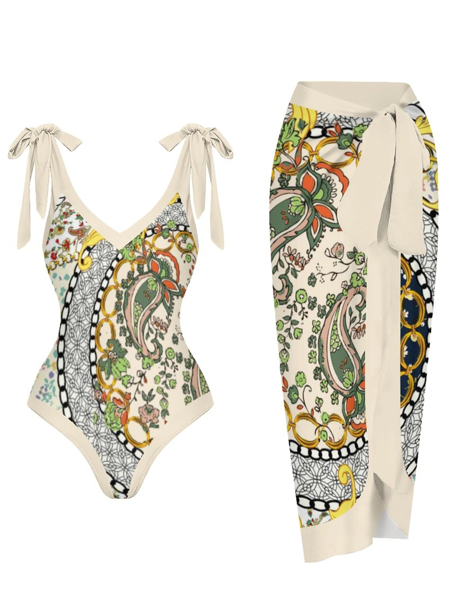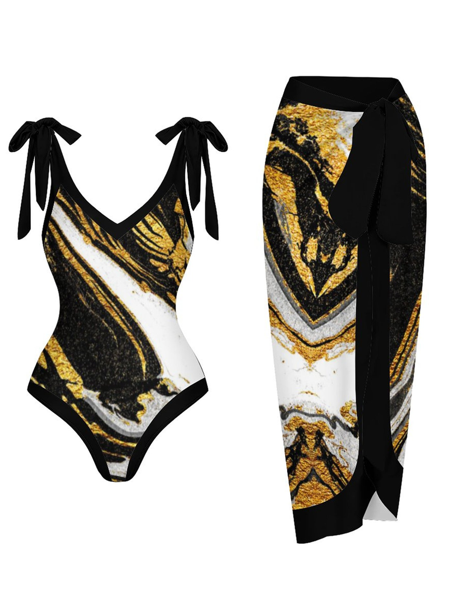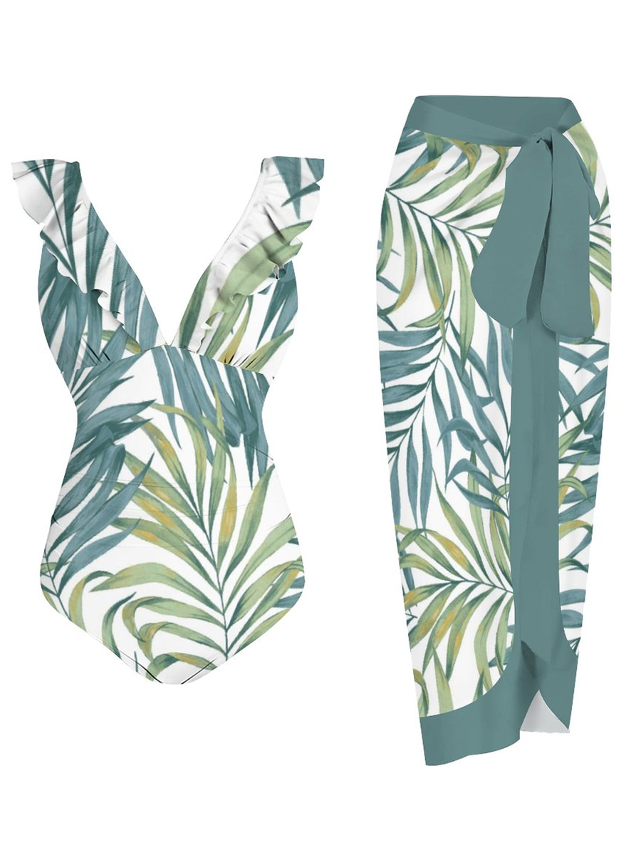 Casual Printed One-Piece Swimsuit And Cover Up 2305102504
