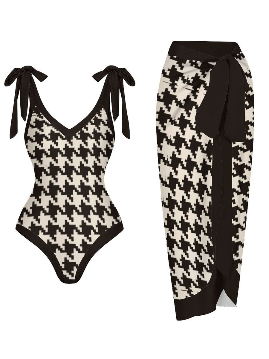Casual Printed One-Piece Swimsuit And Cover Up 2305102758