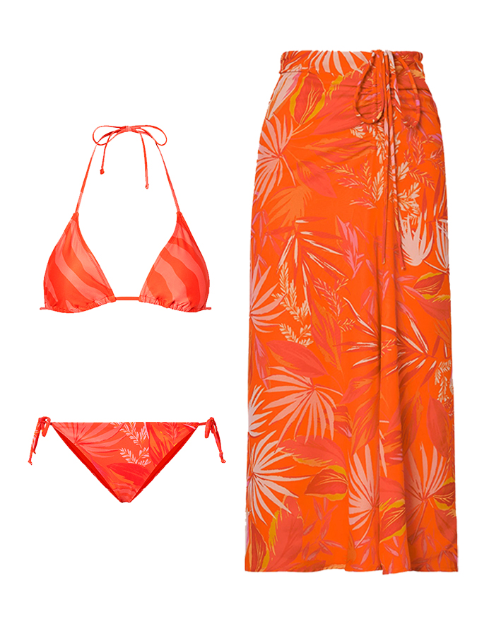 Fashion Vintage Print Bikini Swimsuit Set And Skirt