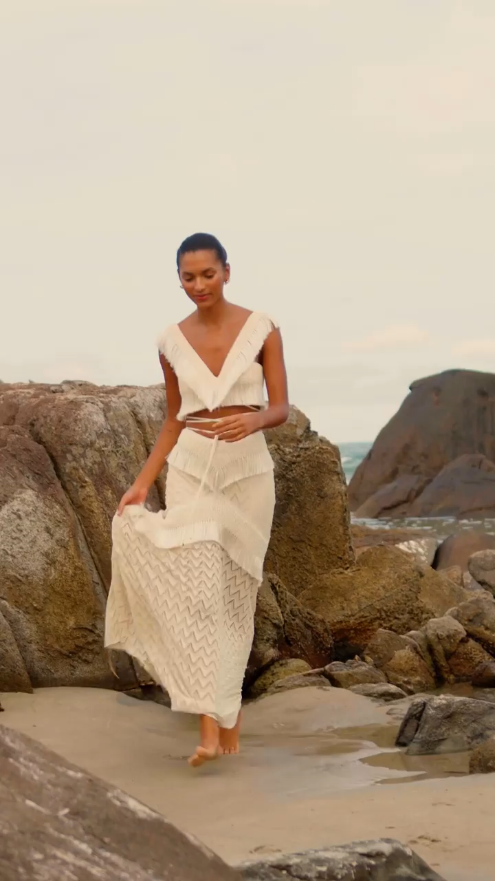 Beach Fringed Solid Color Bikini Swimsuit and Skirt