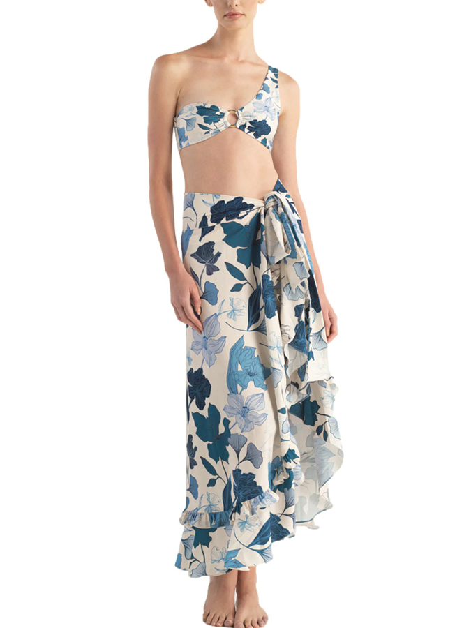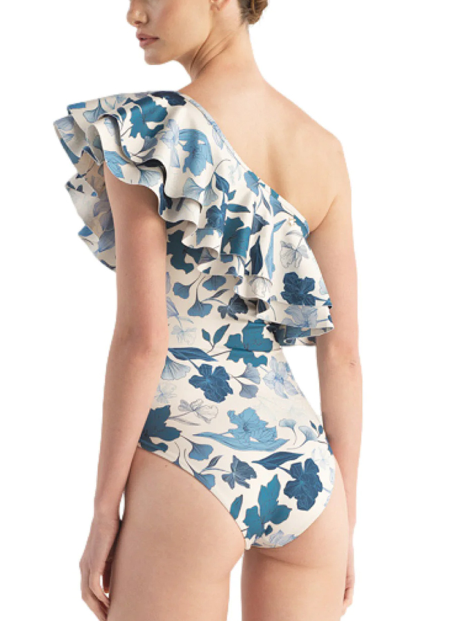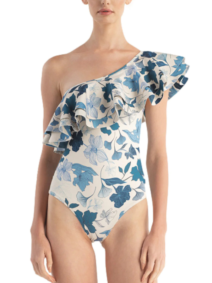 Botanical Floral Print One Shoulder One-Piece Swimsuit And Cover Up