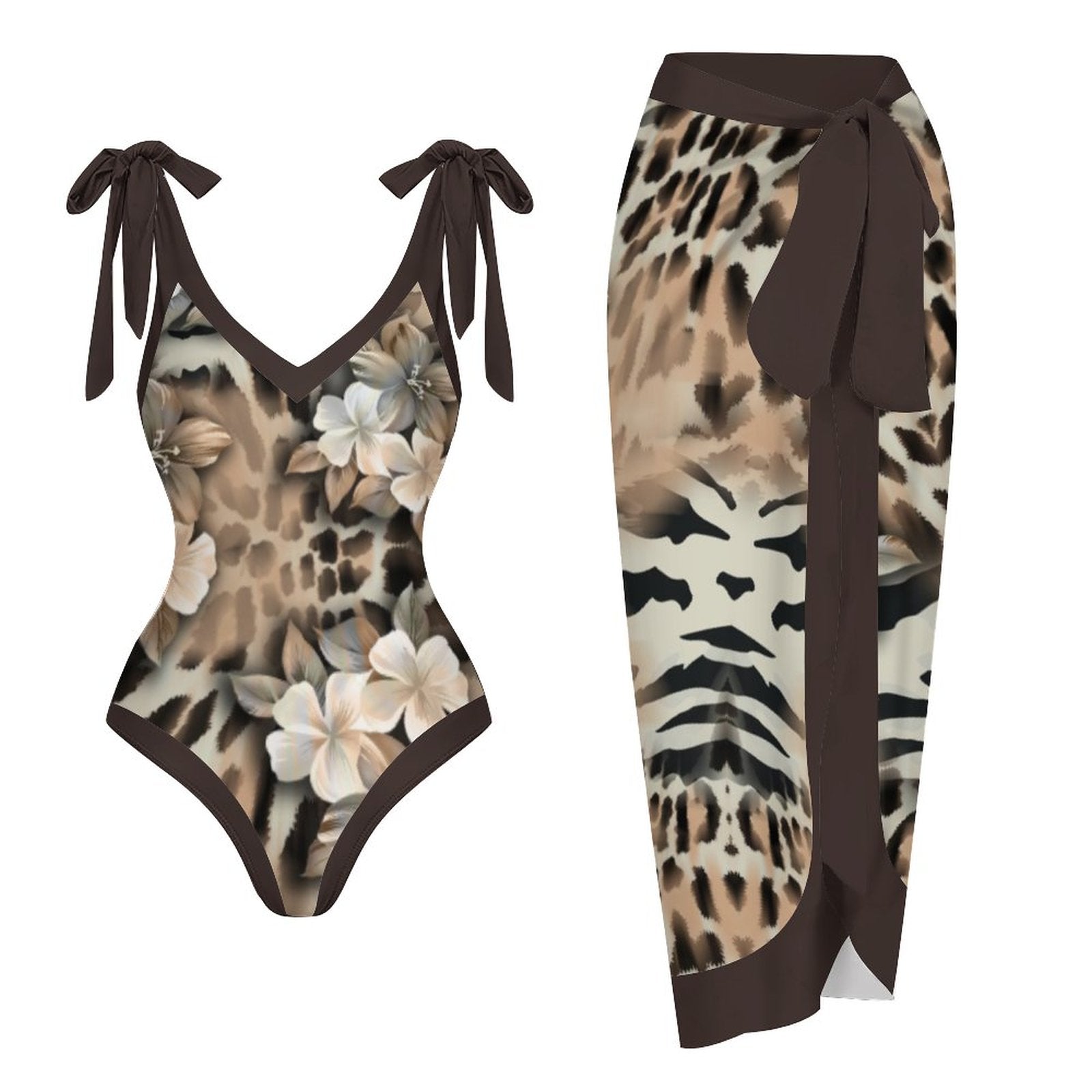 Casual Printed One-Piece Swimsuit And Cover Up 2305102416