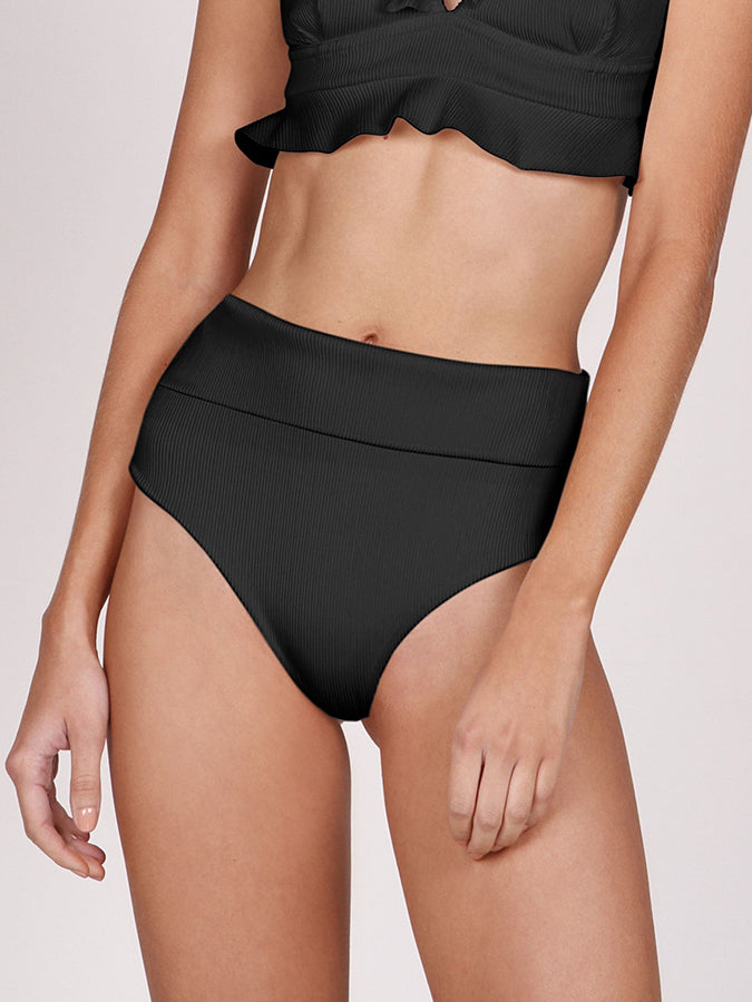 Deep V Ruffled Solid Color Bikini