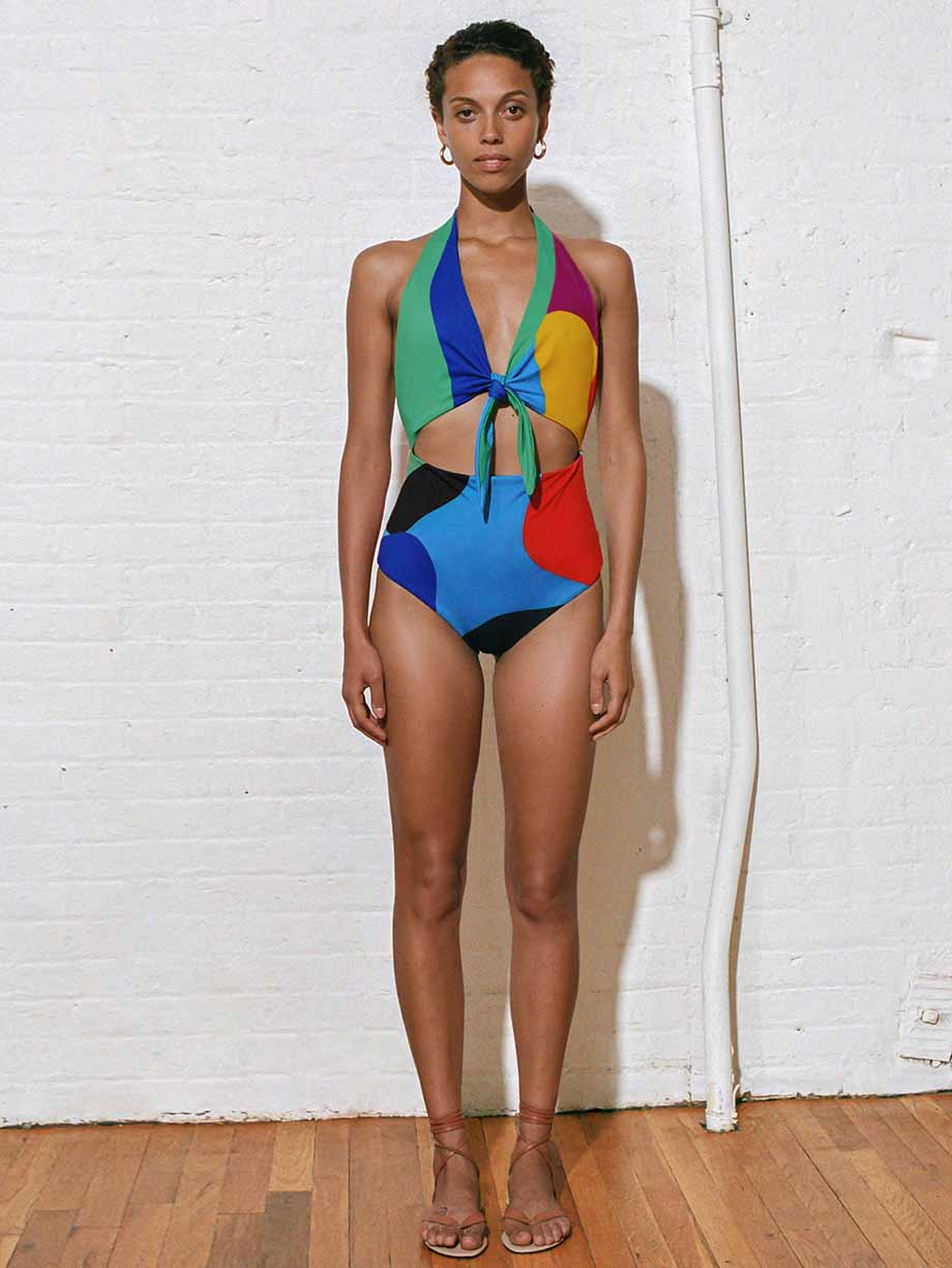 Fashion Colorblock Print Open Back One-Piece Swimsuit