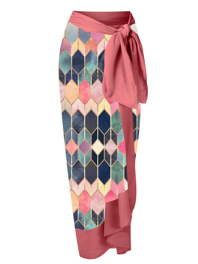 Fashion V-Neck Colorblock Print One-Piece Swimsuit Set