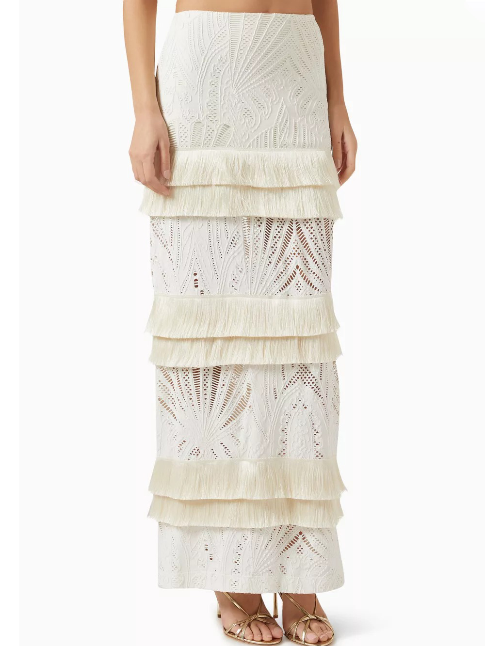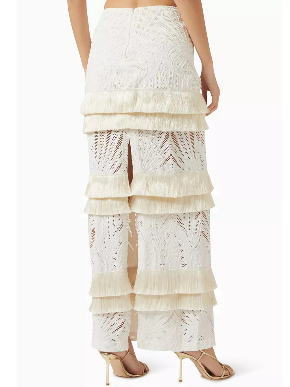 Fringe Trim Lace Maxi Skirt and Bikini Set