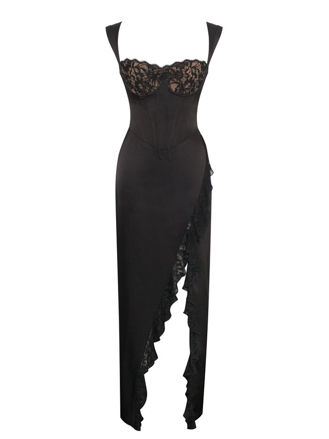 Lace Panled Croset Ruffles Maxi Dress