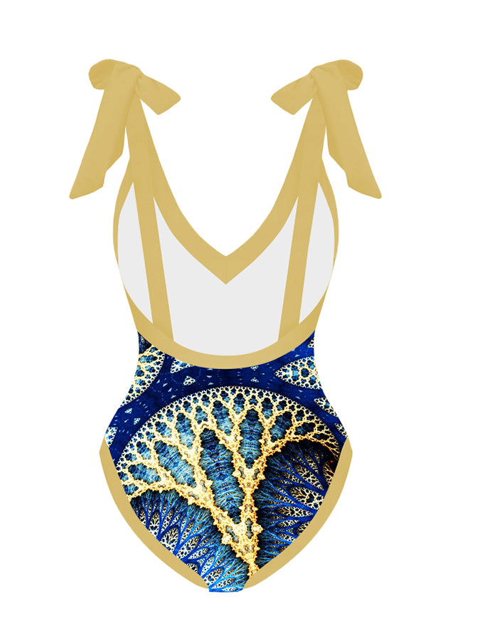 Lace-Up Panel Fashion One-Piece Swimsuit