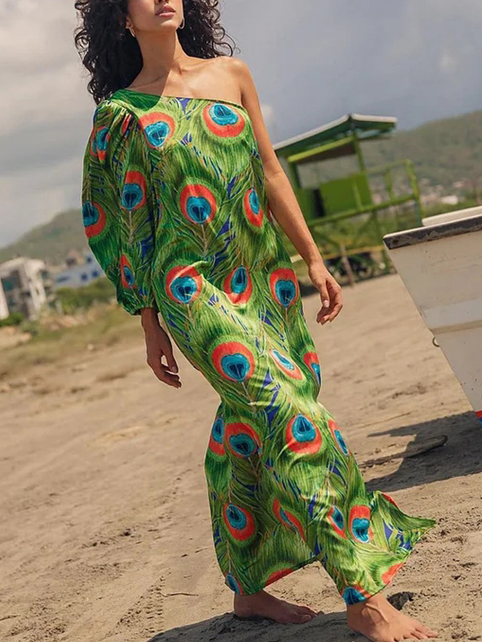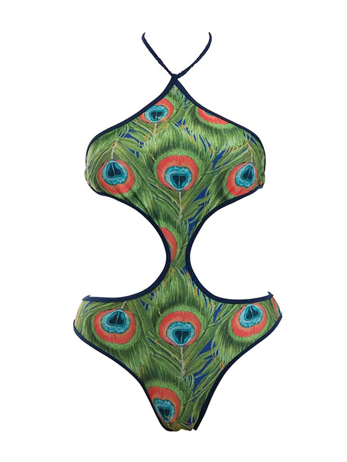 Peacock Feather Printed One Piece Swimsuit and Cover UP