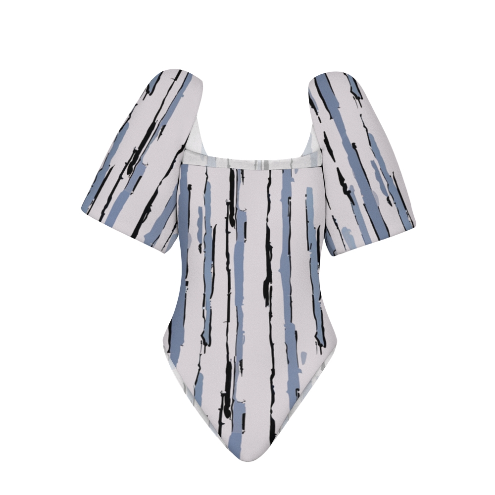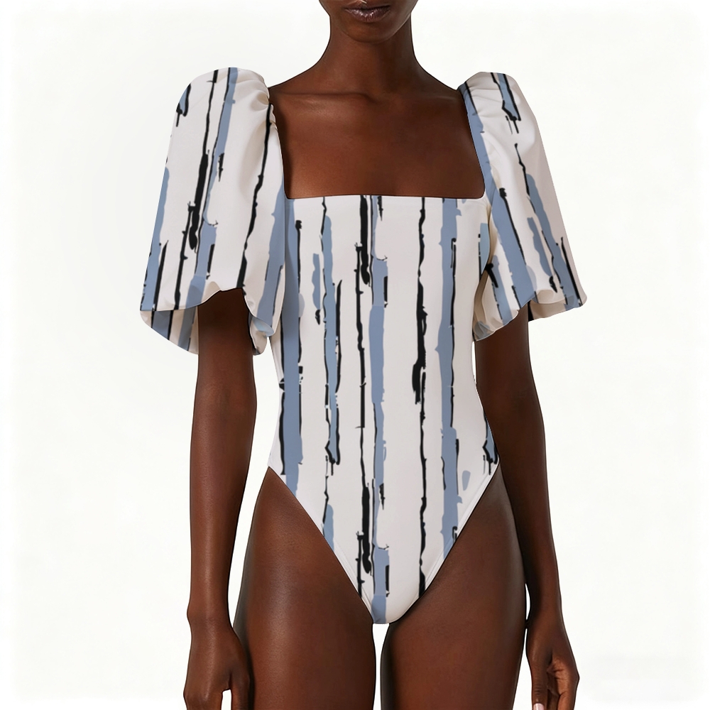 Playful digital art Puff Sleeve Square Neck One-Piece Swimsuit