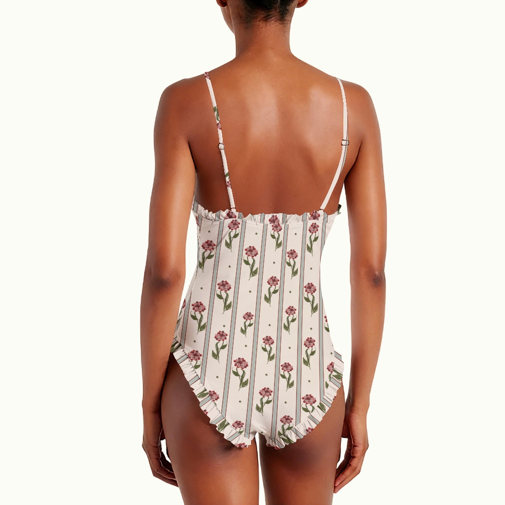 Purple-red floral pattern Women's nylon spandex swimsuit