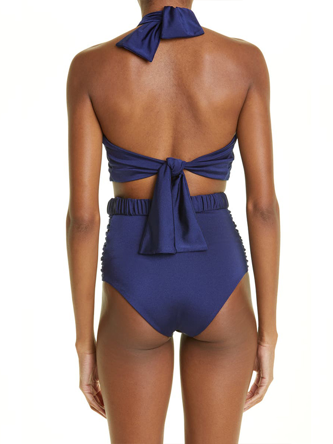 Solid Color Lace Up Fashion Bikini Swimsuit