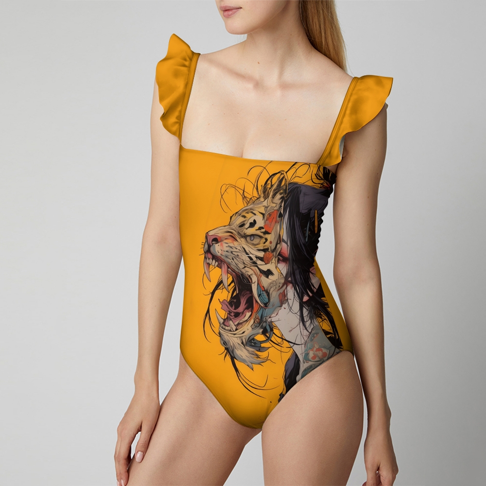 Tiger girl Japanese art Women's nylon polyester swimsuit