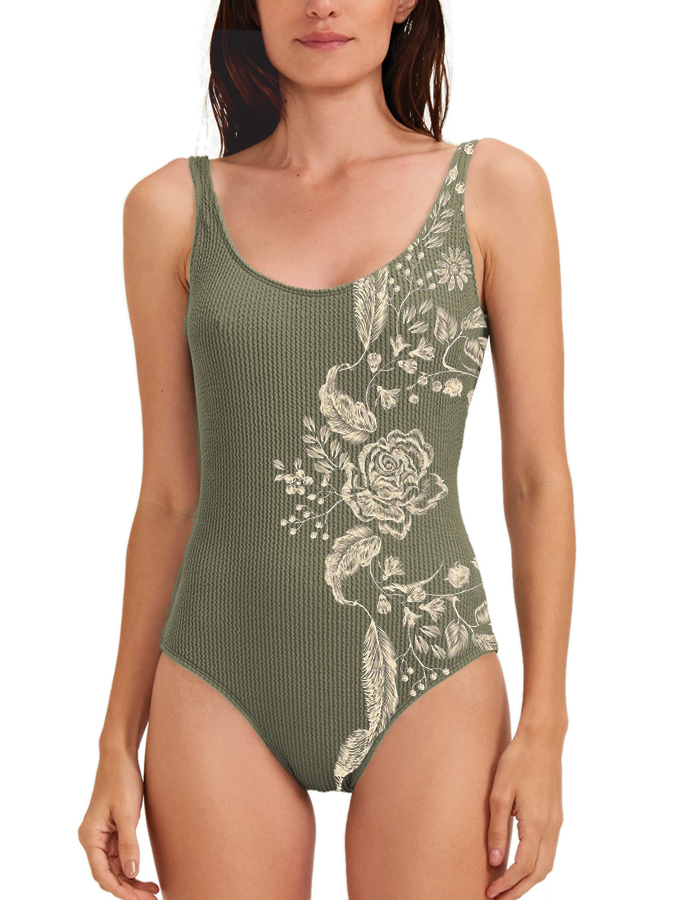 Vintage Floral Print One Piece Swimsuit And Vintage Floral Beach Wear Cover up