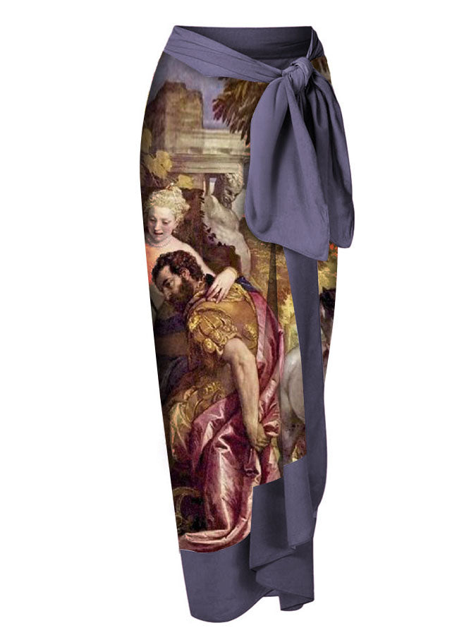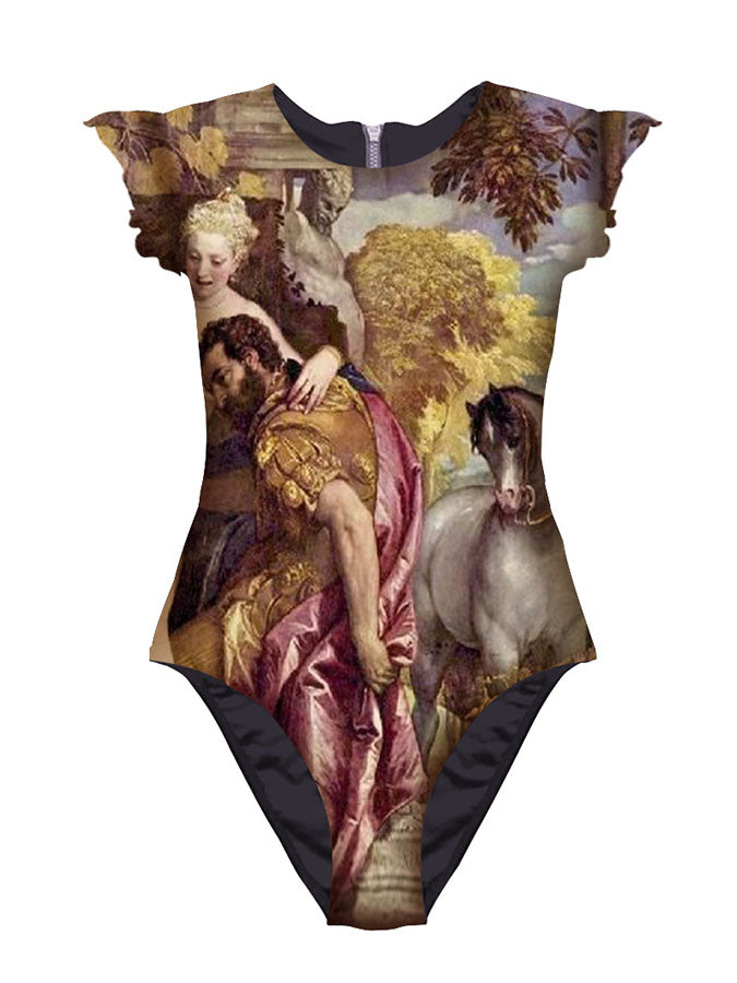Vintage Oil Print Ruffled One-Piece Swimsuit Set