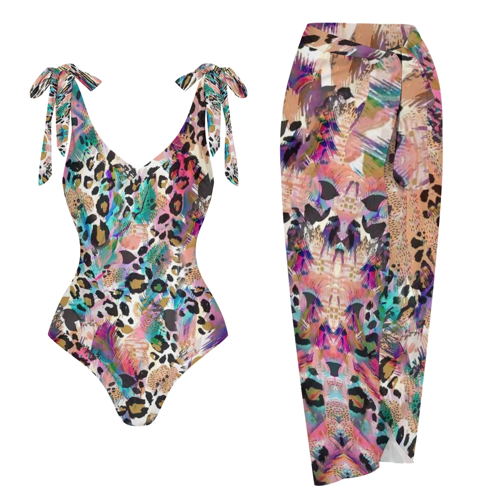 Women's Leopard Printed One Piece Swimsuits and Cover Ups